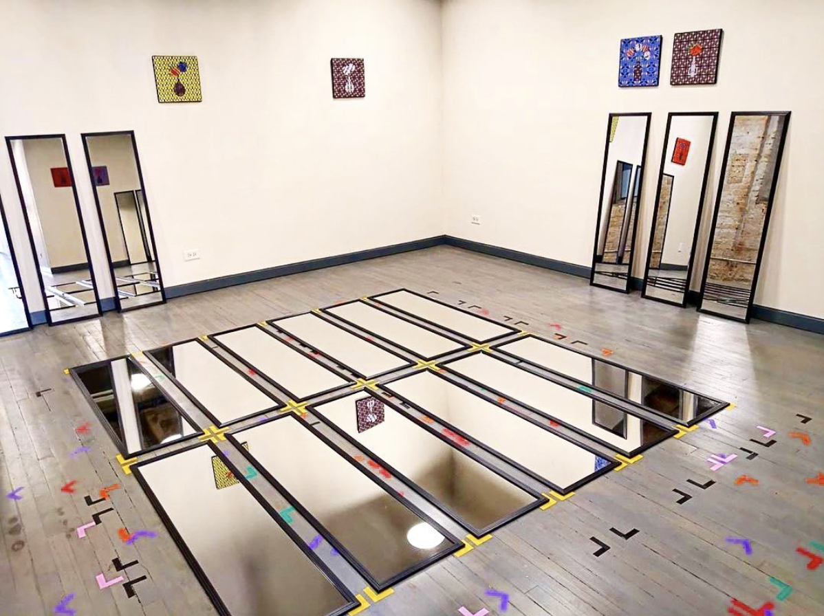 Spike Marks and Mirrors, Scene 4, 2020. Mirrors, vinyl. Durational installation. Variable dimensions.